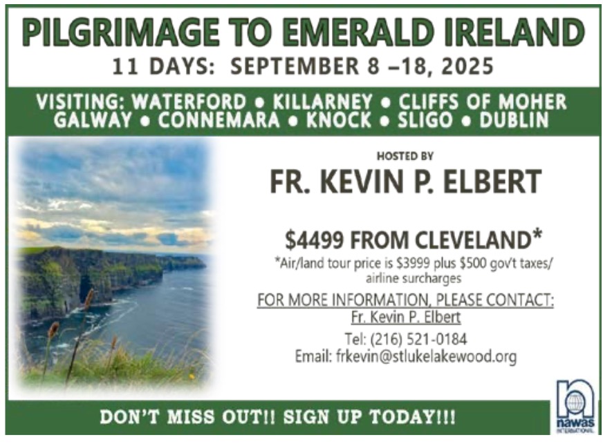 2025 Pilgrimage to Emerald Ireland September 8, 2025 – September 18, 2025 Note: This pilgrimage will be similar to our pilgrimage in 2019. Until we get additional information please click 2019 Pilgrimage