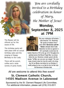 Birthday Celebration of Mary, the Mother of Jesus! September 8, 2025 7:00 pm - 8:00 pm St Clement Church