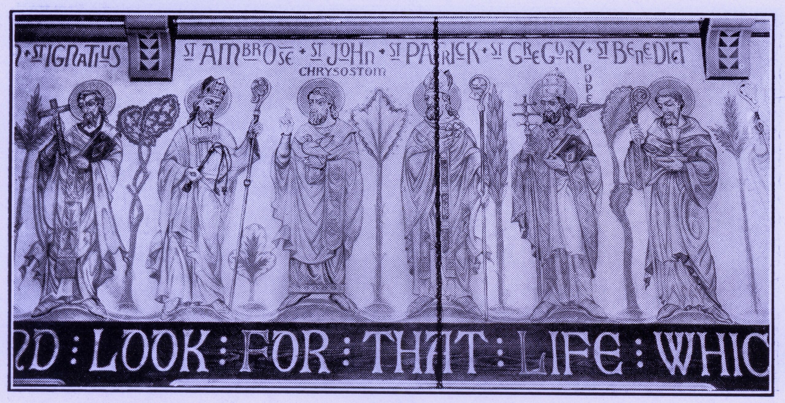 On the Epistle-side, reading from the rear of the Church to the sanctuary, text is from the New Testament, of St. Tobias: