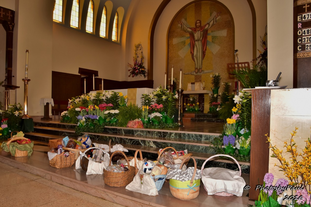 This deeply rooted tradition is rich with symbolism for Easter, Spring, the Resurrection and many other reminders of our faith. This blessing has been a cherished Catholic ritual for centuries among families of Eastern European origin and adopted by people of all ethnic backgrounds who enjoy this richly symbolic custom. On Holy Saturday, families would prepare their Easter Baskets to be later blessed at church. After Easter Sunday’s Resurrection Mass, the family and guests would share this blessed fare and exchange good wishes.