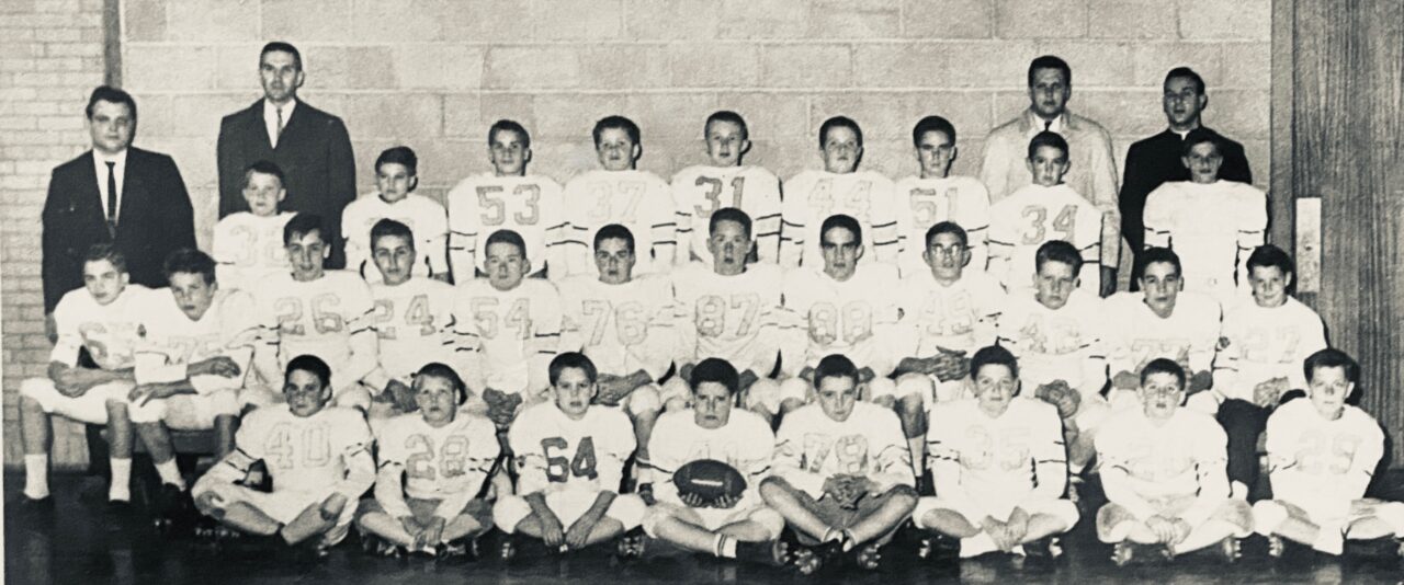 Top Row: Coaches: Jim Chesterton, Bill Mason and Jack McCutcheon; Moderator: Father Ralph Coletta