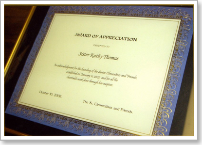 2008 Clementine Award presented to Sister Kathy Thomas.